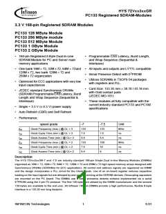 The HYS 72Vxx3xxGR-7 and -7.5 are industry standard 168-pin 8-byte Dual in-line Memory Modules (DIMMs)